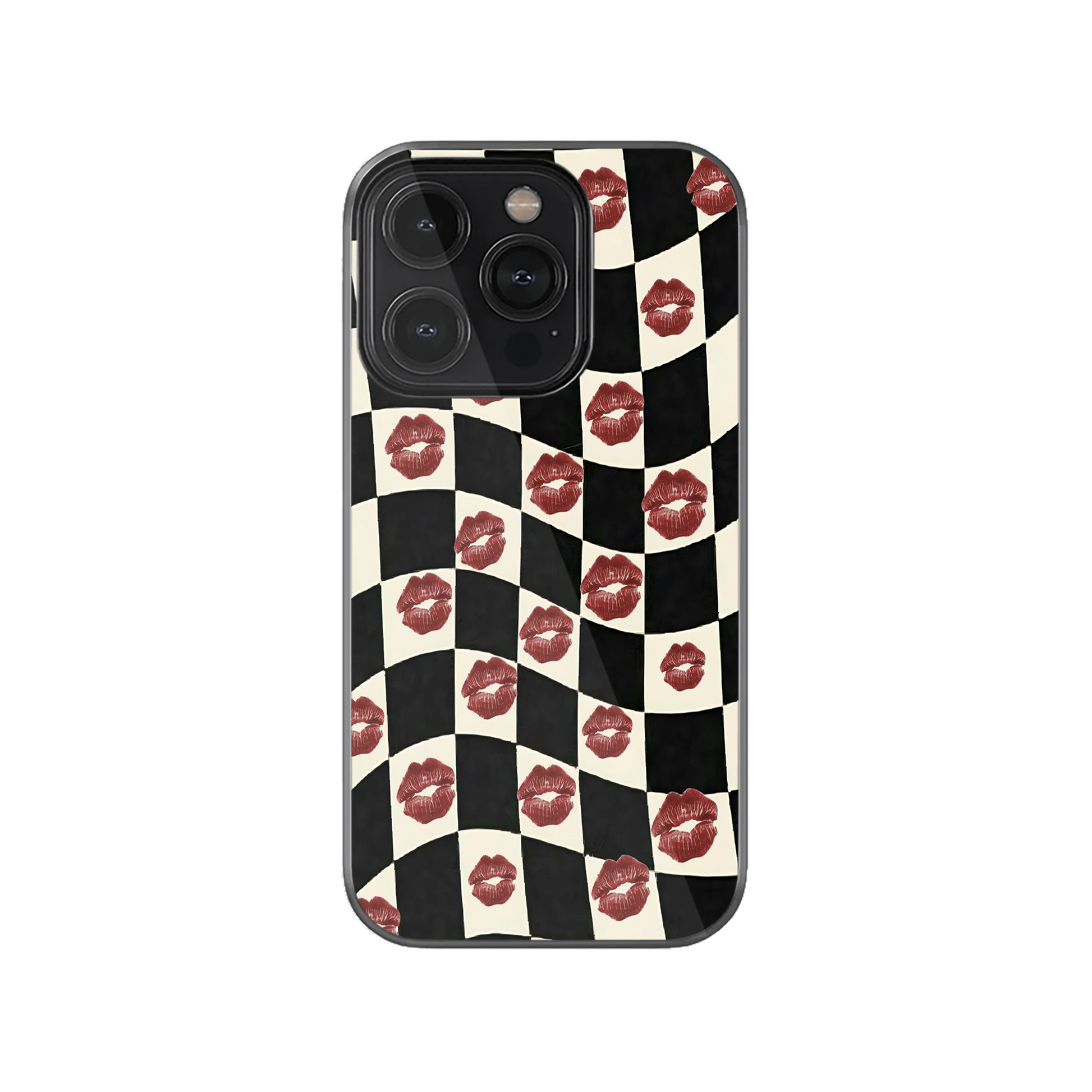Pucker up for pattern perfection! This playful checkerboard phone case features adorable kiss marks scattered across a classic black-and-white checked design. Protect your device in style with a case that's equal parts fun and functional. A must-have for anyone who loves bold, retro-inspired aesthetics.