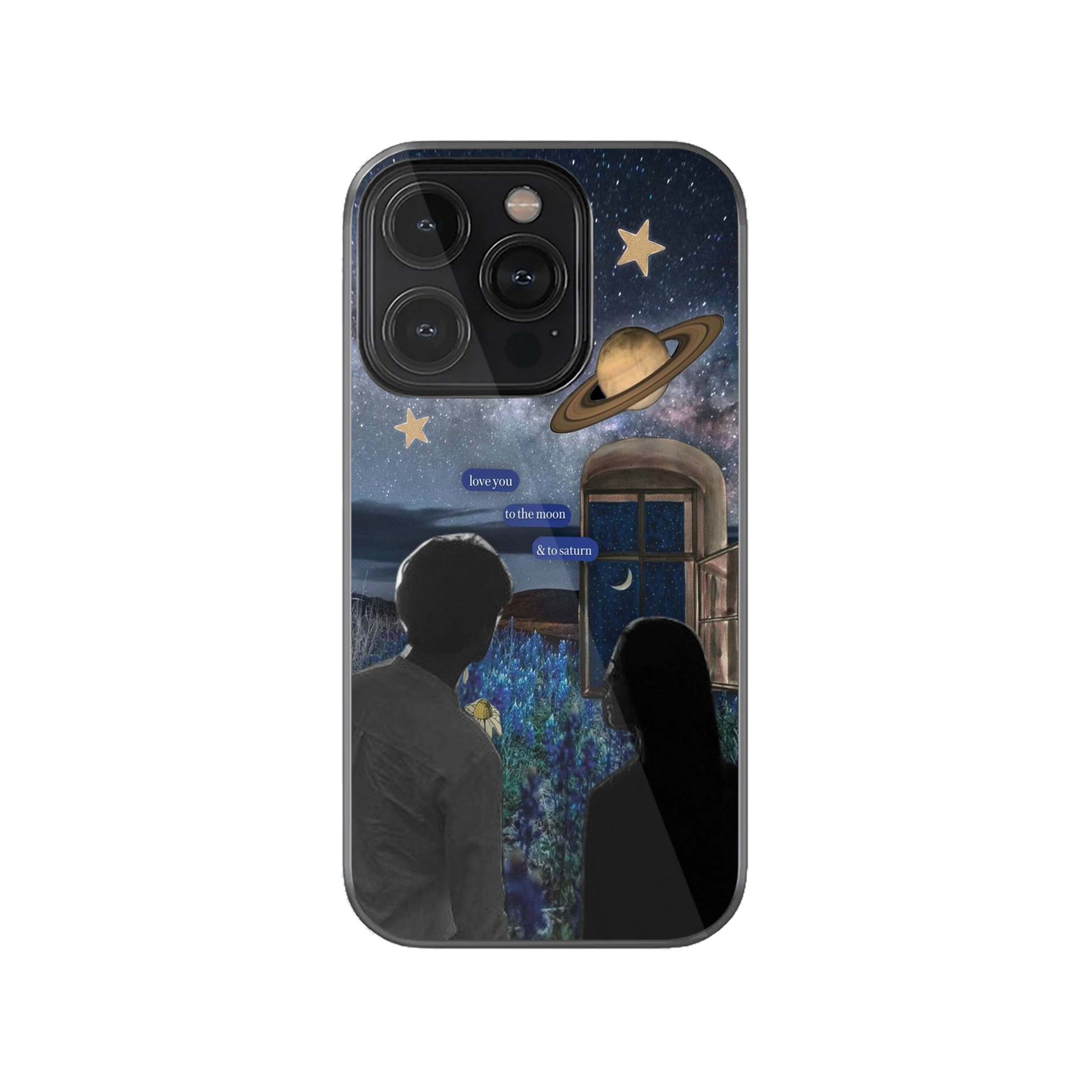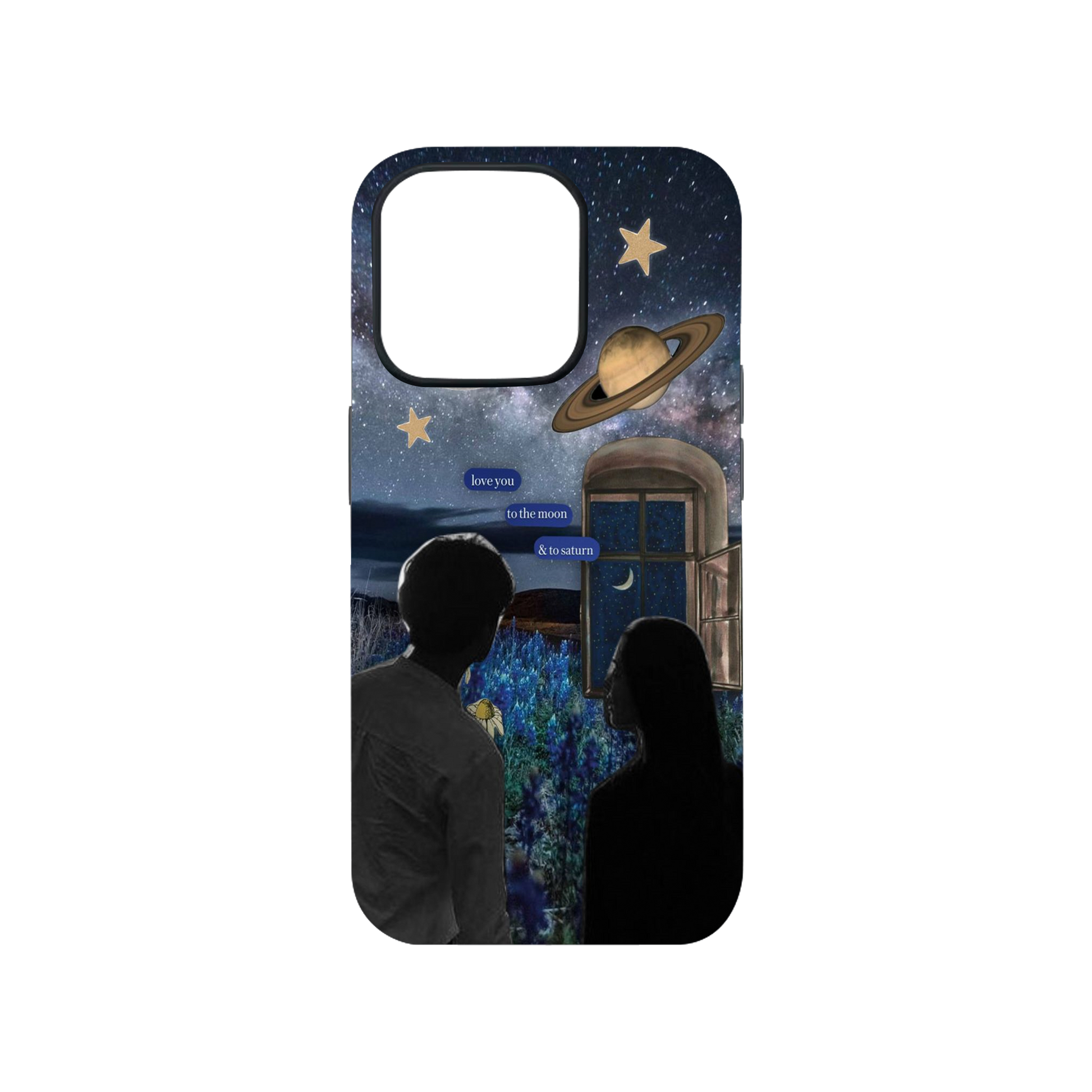 A sophisticated tribute to infinite devotion, this phone case features a couple beneath the stars as he tenderly tells his beloved: "I love you to the moon and to Saturn." An elegant expression of love that reaches beyond the heavens themselves.
